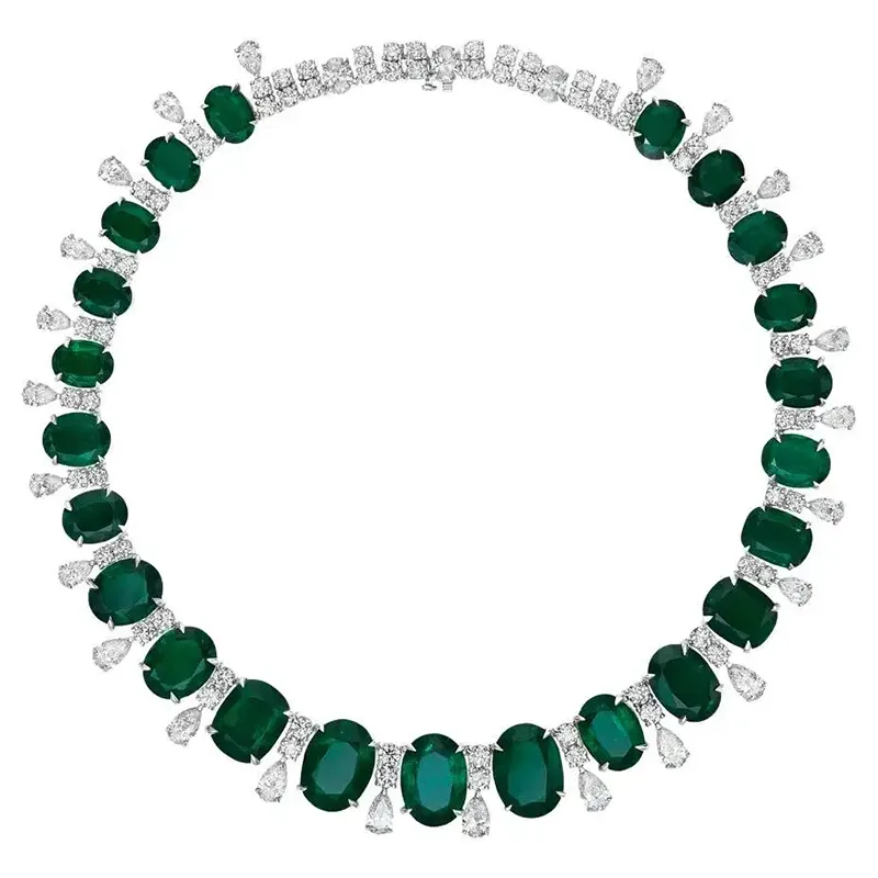 Why Collectors and Investors Choose the 142.06ct Oval & Cushion Cut Emerald & Pear Shape Diamond Necklace