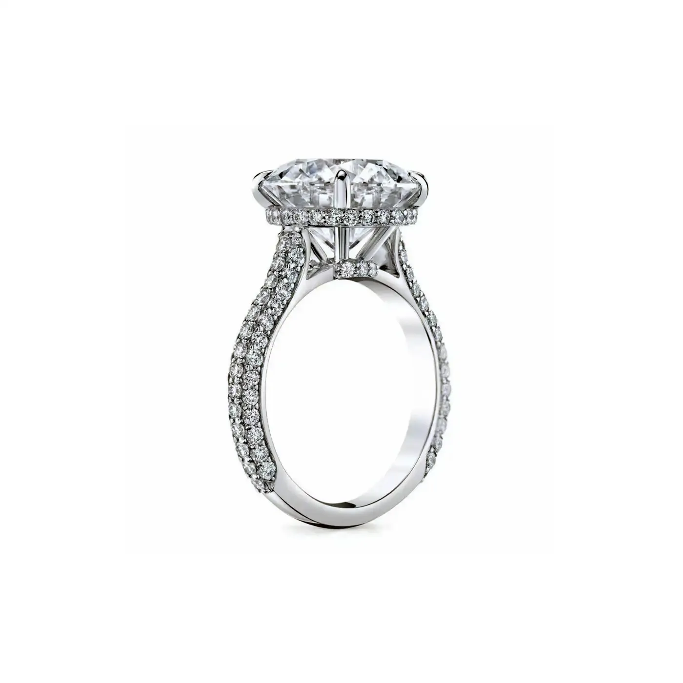 Setting: Pavé-set diamonds on band, open gallery design