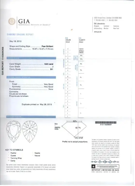 Certification and Authenticity – 29.28 Carat GIA Certified Pear Shape Diamond Earrings