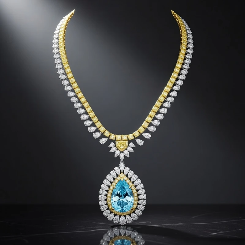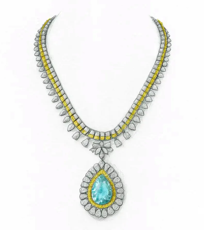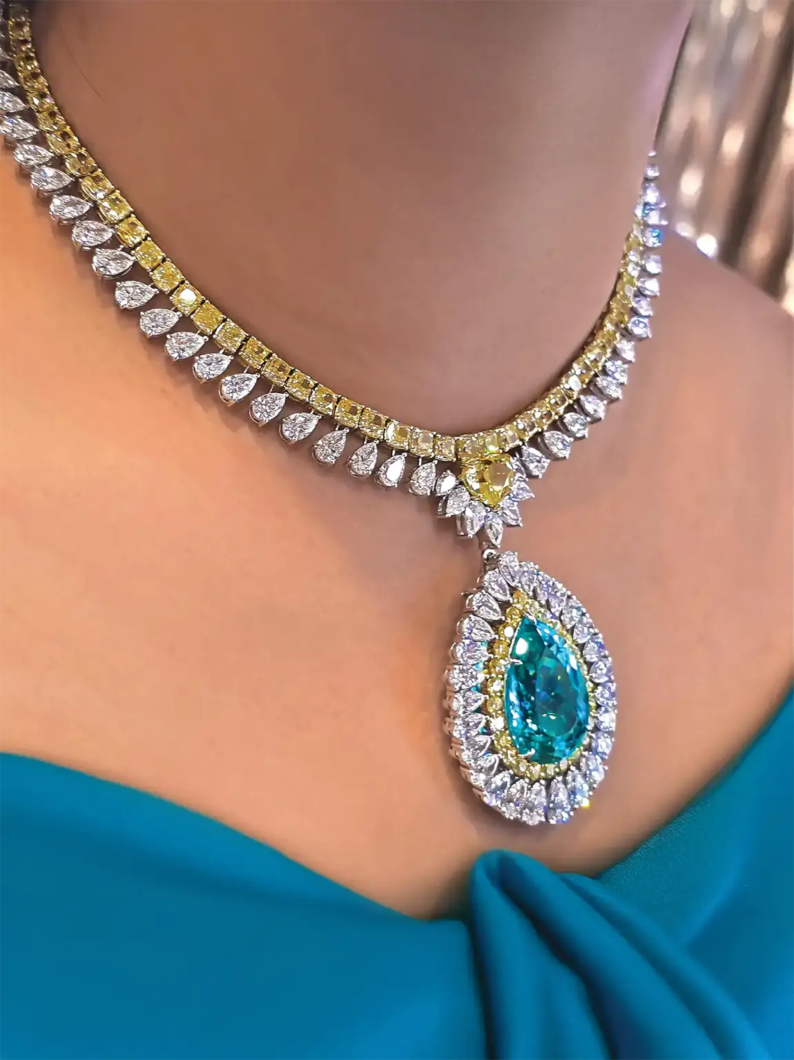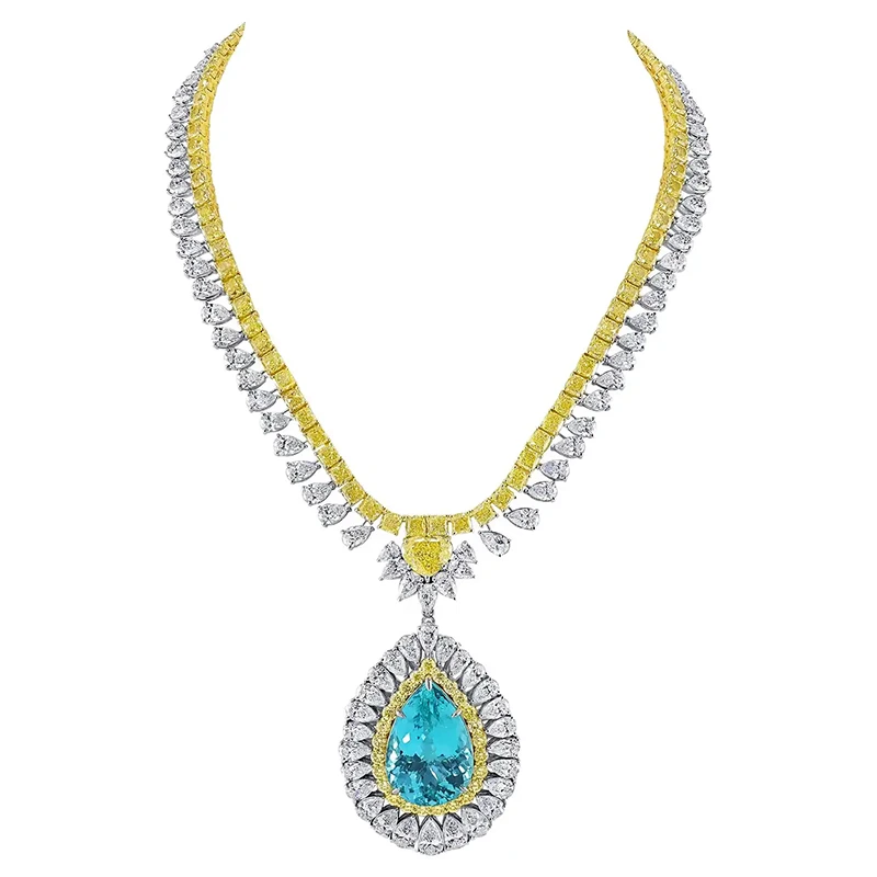 The Paraiba Imperium Convertible Necklace represents the pinnacle of high jewelry, where vision, creativity, and precision meet to create an unforgettable masterpiece. see the Gia 180ct Fancy Yellow Diamond Set