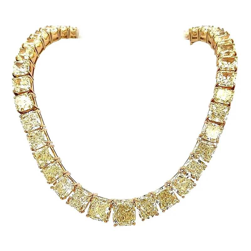 The GIA Certified 116.80 Carat Yellow Diamond Tennis Riviera Necklace by Alexander Beverly Hills is a true masterpiece—an embodiment of luxury, elegance, and rarity.