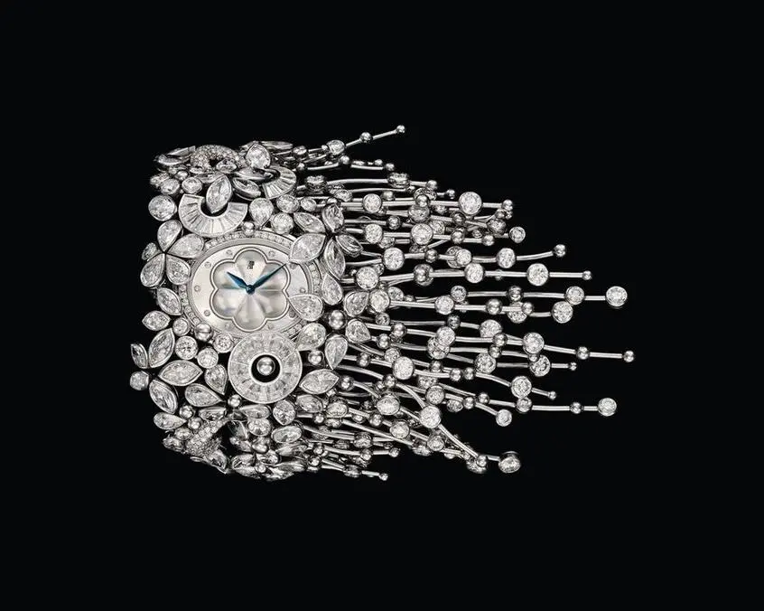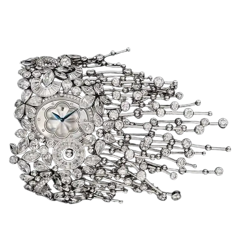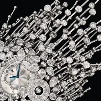 Rare Materials: 18kt white gold, mother-of-pearl, and hundreds of hand-set diamonds.