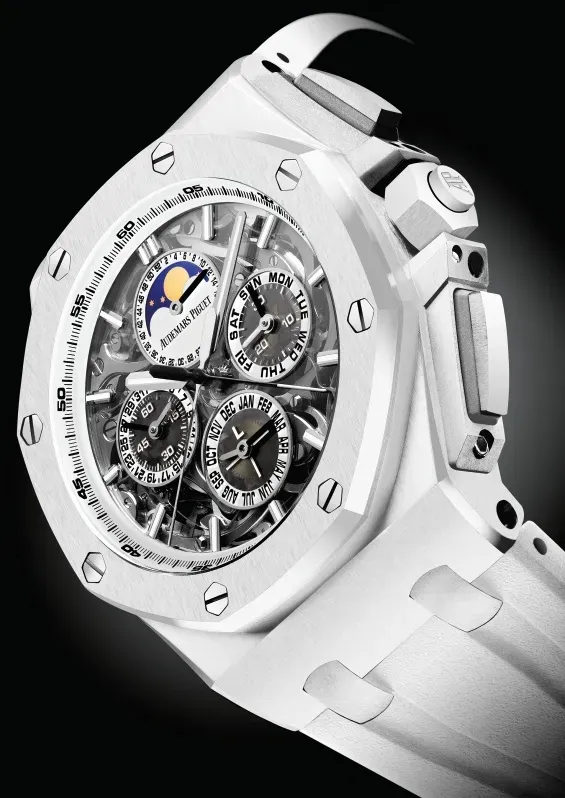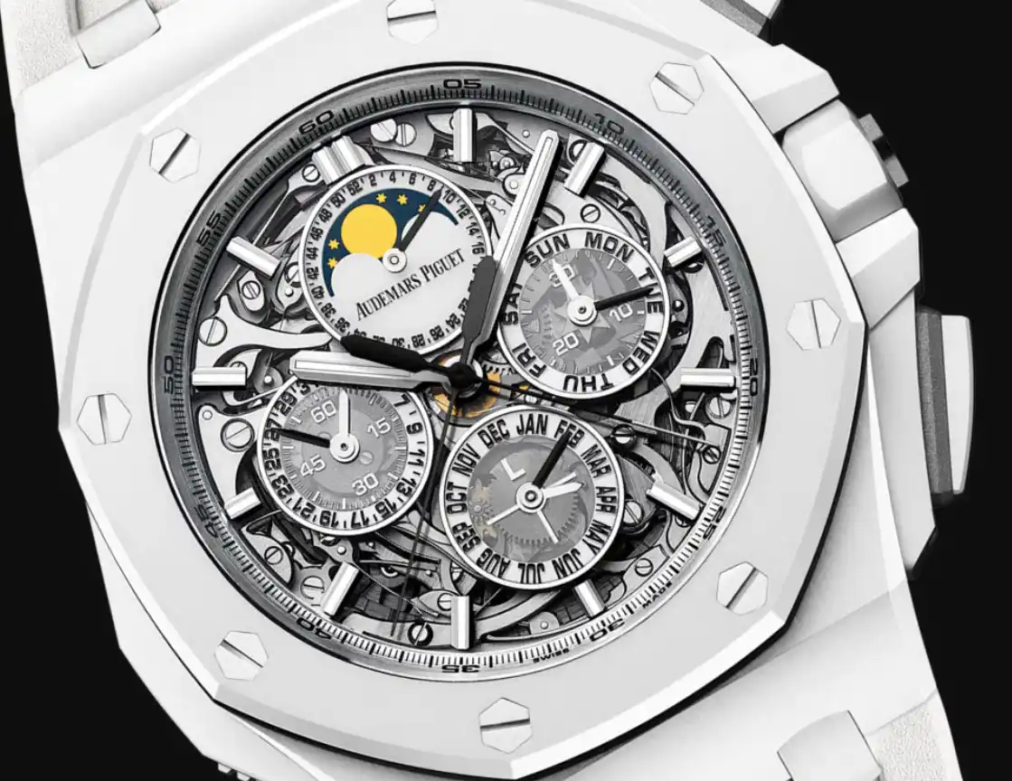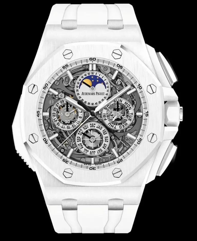 The Audemars Piguet Royal Oak Offshore Grande Complication 44mm White Ceramic Sapphire Dial Rubber Strap is more than a timepiece — it is a testament to innovation, craftsmanship, and luxury.