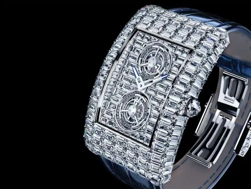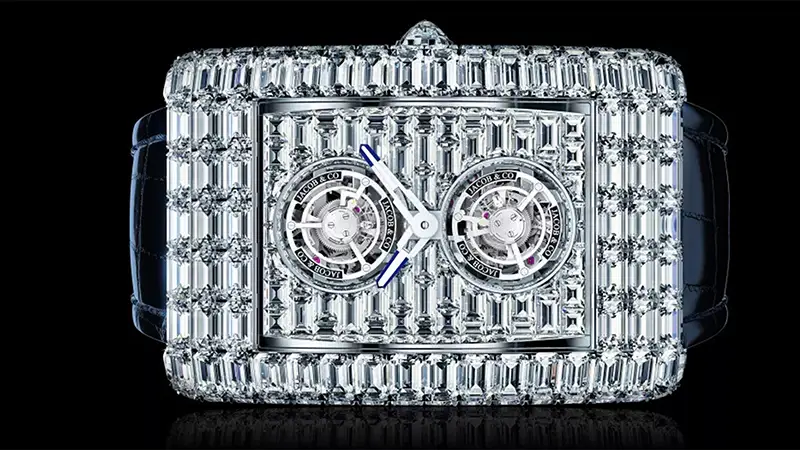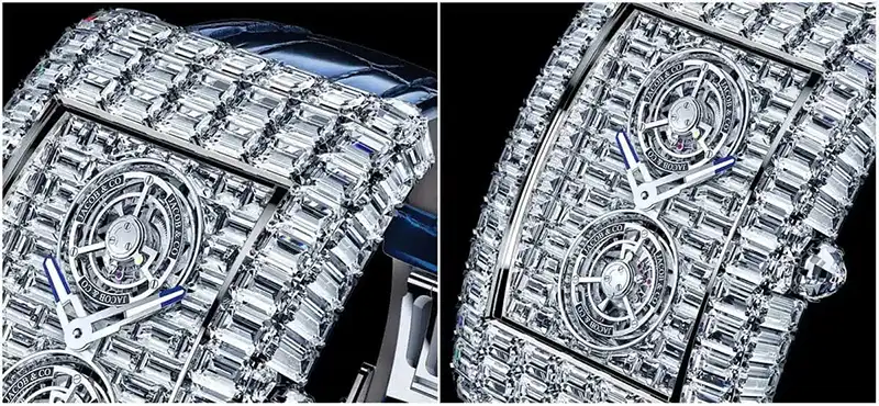 This approach turns the Billionaire Double Tourbillon Jacob & Co. into a wearable three-dimensional jewel sculpture, where every angle reveals new facets of brilliance.