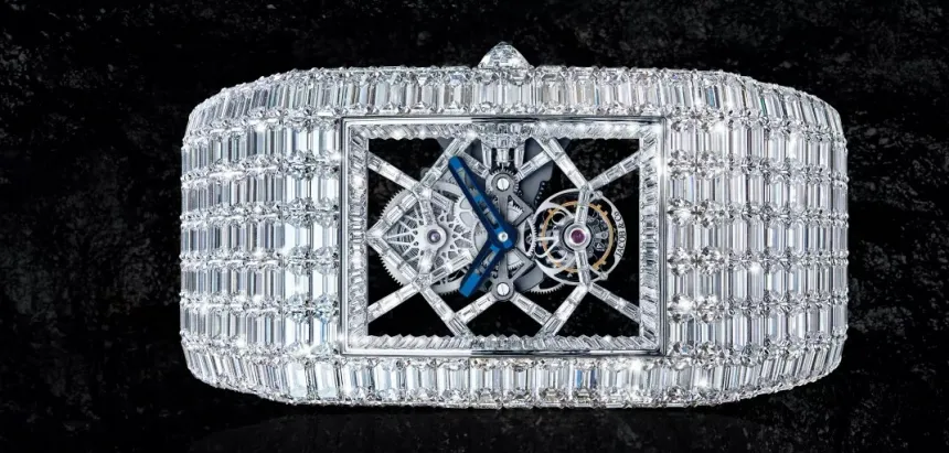 Sculptural Design: The rectangular case and intricately set diamonds make the watch a wearable sculpture, blending horology with high jewelry artistry.