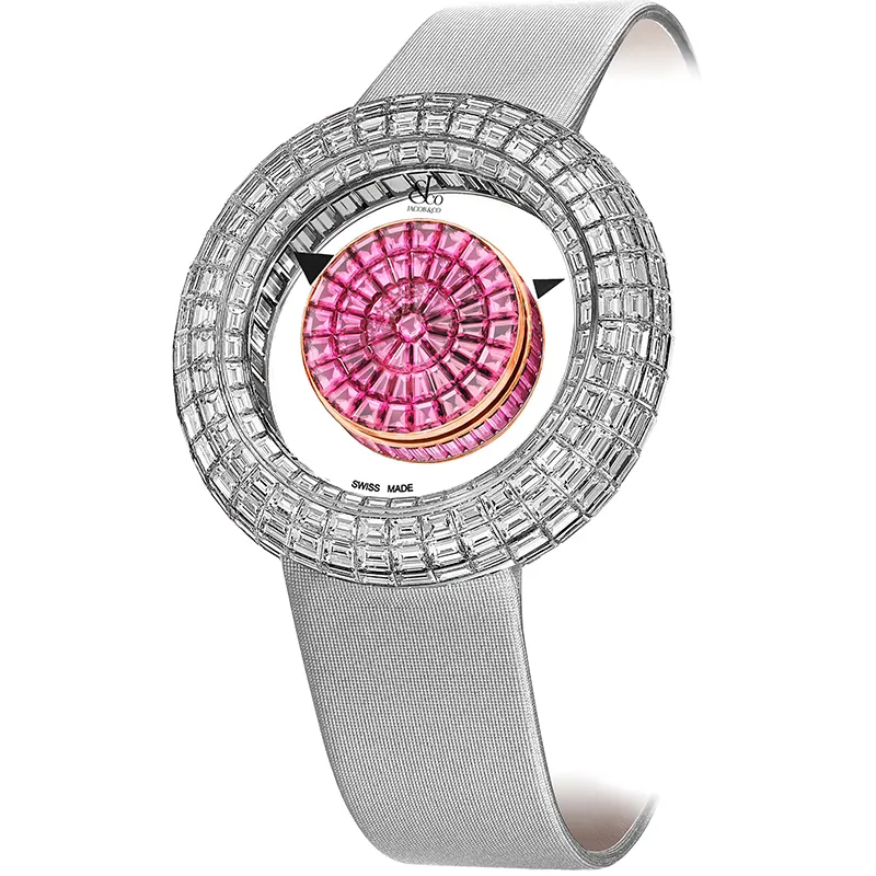 Dial: Invisible hands on pink sapphire and white diamond background
