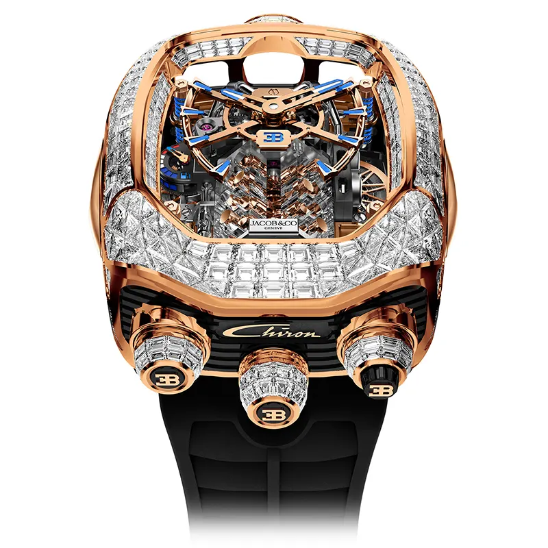 Bugatti Chiron Tourbillon Baguette Diamonds Rose Gold on Strap Jacob & Co. – Exquisite Gem-Setting and High Jewelry Craftsmanship