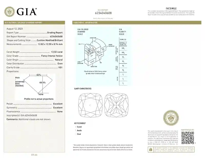 The Cushion Cut Fancy Intense Yellow 13.02 Carat Diamond GIA Certified Ring is not only a piece of jewelry but a rare investment opportunity. Fancy Intense Yellow diamonds have historically appreciated in value, particularly GIA-certified stones with VS1 clarity and substantial carat weight. This ring offers both aesthetic pleasure and long-term financial security, making it a highly desirable addition to any luxury collection. “Explore our exquisite collection of colored diamonds – rare, vibrant, and investment-grade gems for discerning collectors.”