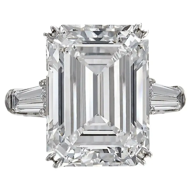 Specifications GIA Certified 10 Carat Emerald Cut Diamond Ring with Tapered Baguette