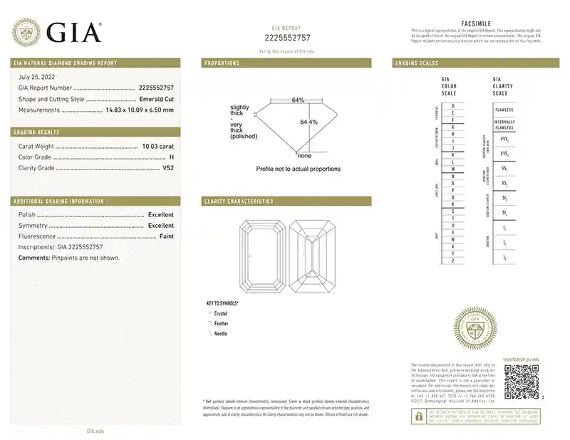 Features an ultra-rare 10-carat emerald-cut white diamond, prized for its step-cut facets, clarity, and iconic “hall of mirrors” light effect.