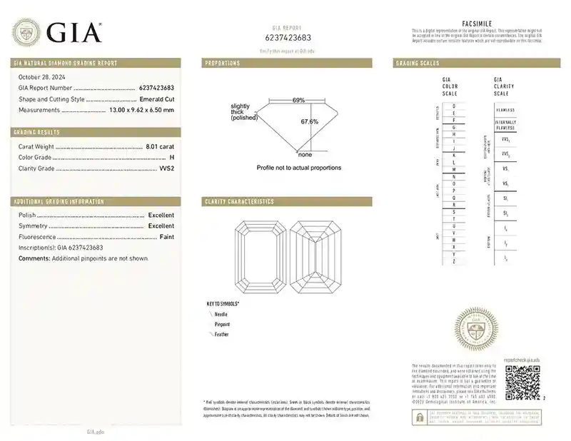 Specifications GIA Certified 8.01 Emerald Cut Diamond VVS2 Clarity Engagement Ring in Platinum