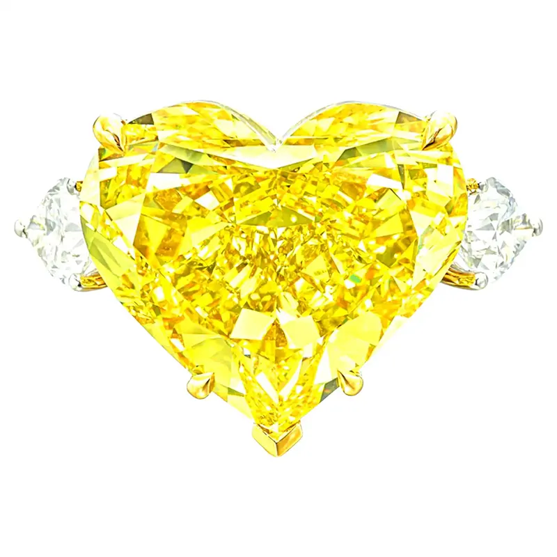Description: Stunning heart cut vivid yellow diamond ring with exceptional brilliance and fire, perfect for making a bold statement.