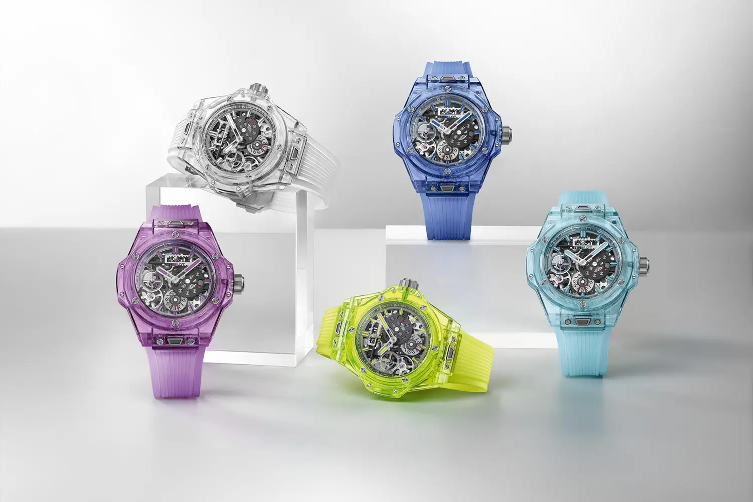 Crafted entirely from violet sapphire crystal, this timepiece is a bold statement of avant-garde design, extreme transparency, and collectible sophistication.