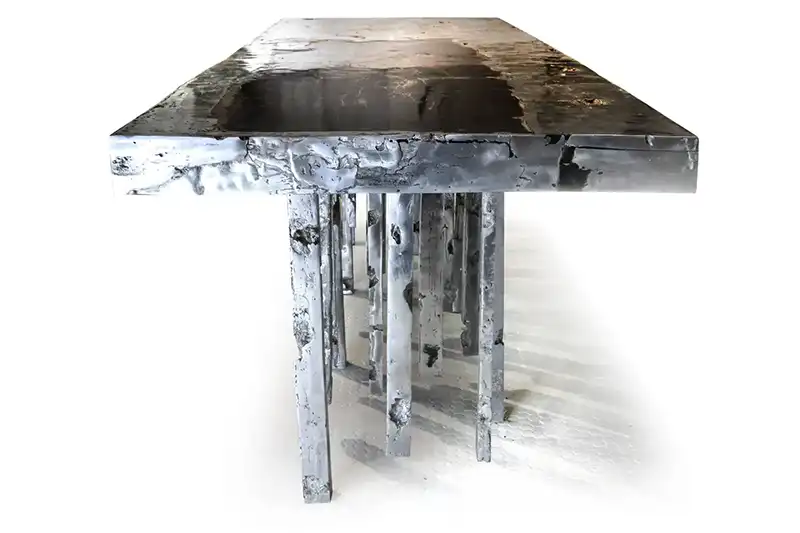 The Vision Behind the One of a Kind Solid Zinc and Petrified Wood Waterfall Sculptural Dining Table