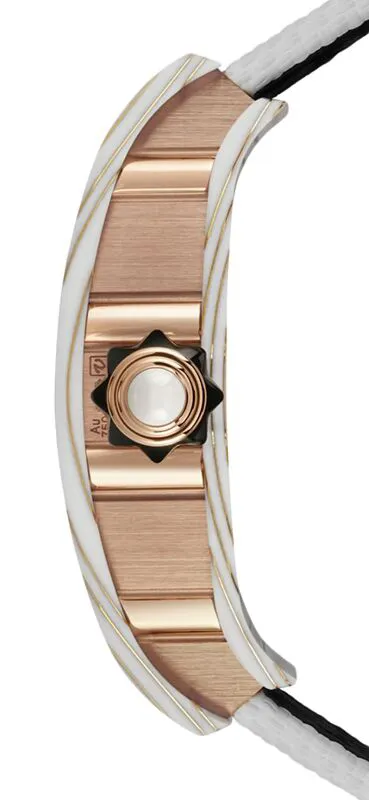 The Gold Quartz TPT® case features a layered, marbled pattern, creating a dynamic and visually captivating effect. Its skeletonized dial showcases the intricate inner workings of the movement, allowing the wearer to fully appreciate the complex tourbillon and mechanical artistry.