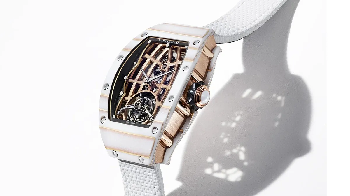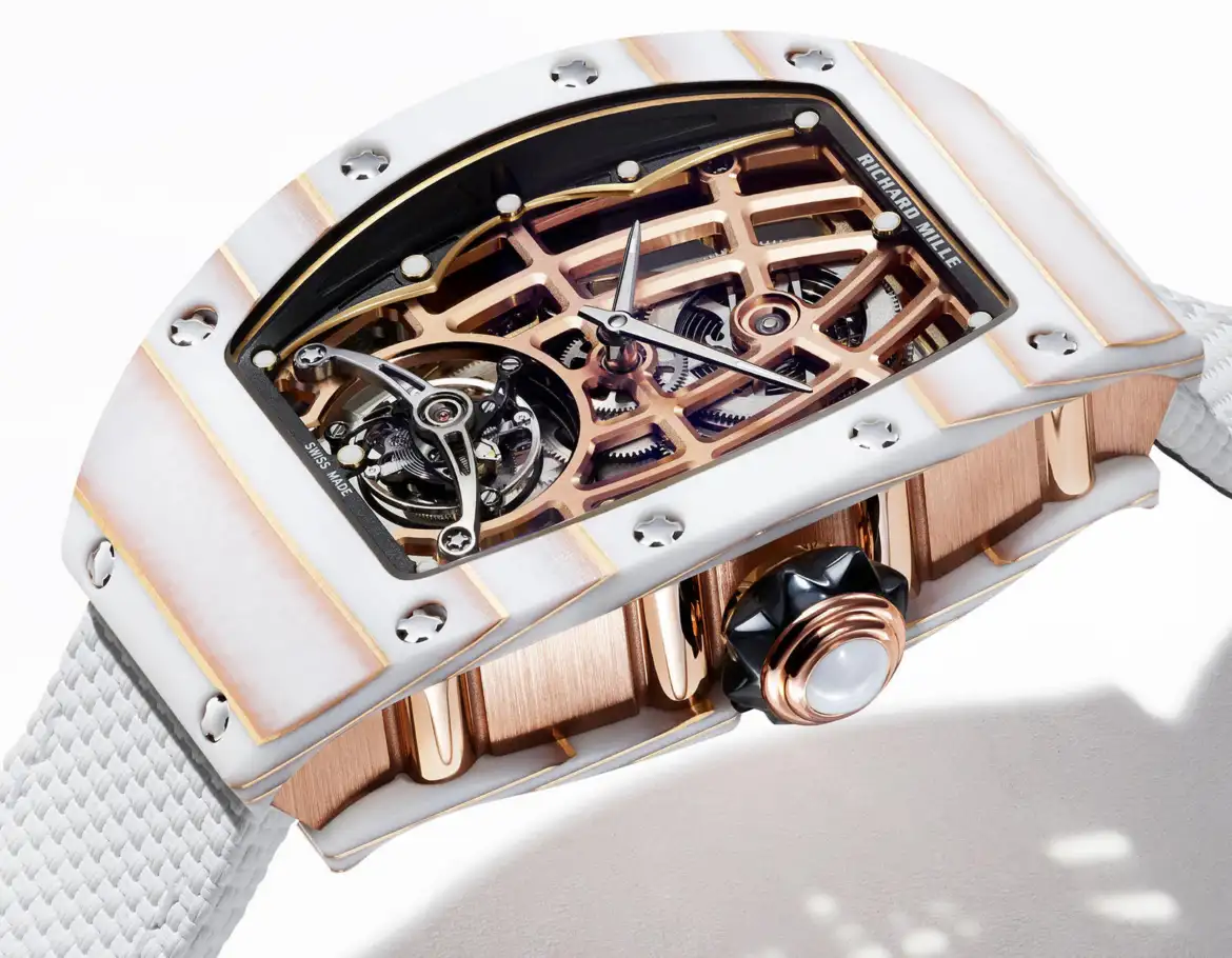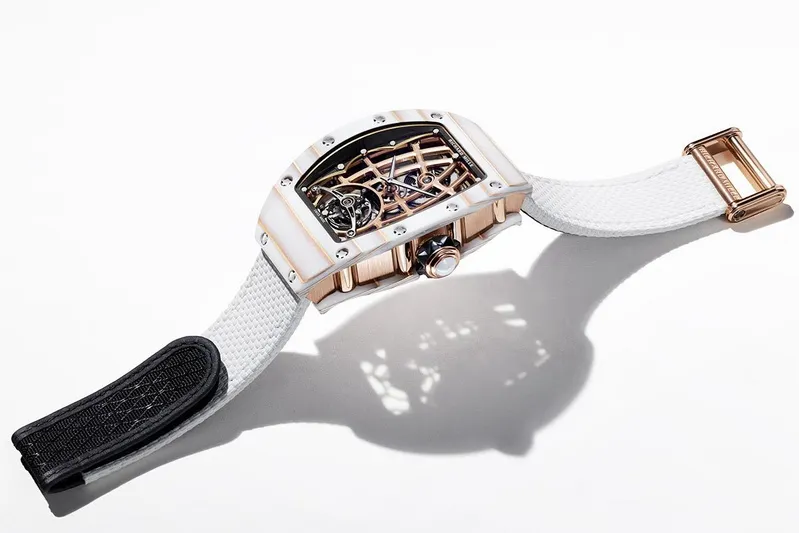 The combination of Gold Quartz TPT® case and skeletonized tourbillon movement demonstrates Richard Mille’s unique ability to merge mechanical mastery with artistic innovation, creating a watch that is both visually stunning and technically superior. See the Richard Mille RM 38-02 Bubba Watson Tourbillon