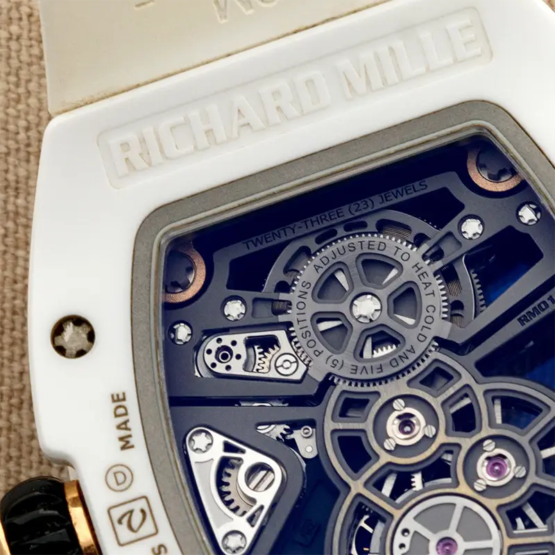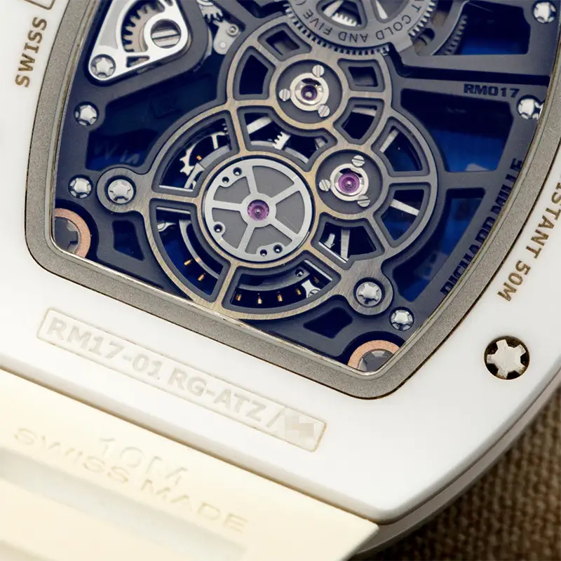 Despite its high-tech design, Richard Mille Manual Winding Tourbillon White Carbon TPT RM 17-01 is practical for everyday wear, offering 30 meters (3 ATM) water resistance, protecting against splashes and humidity.