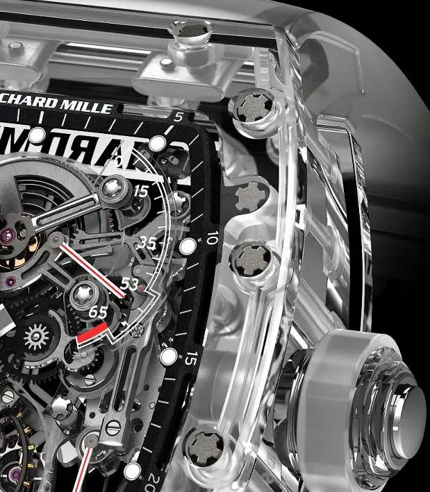 The RM 56-01 is not only an engineering marvel but also a symbol of exclusivity and visionary design. Every angle, curve, and edge has been meticulously refined, reflecting Richard Mille’s dedication to pushing the boundaries of watchmaking. The transparency of the case gives the impression that the movement is floating in midair, creating a sense of weightlessness that aligns with the high-speed, high-performance inspiration drawn from motorsport.