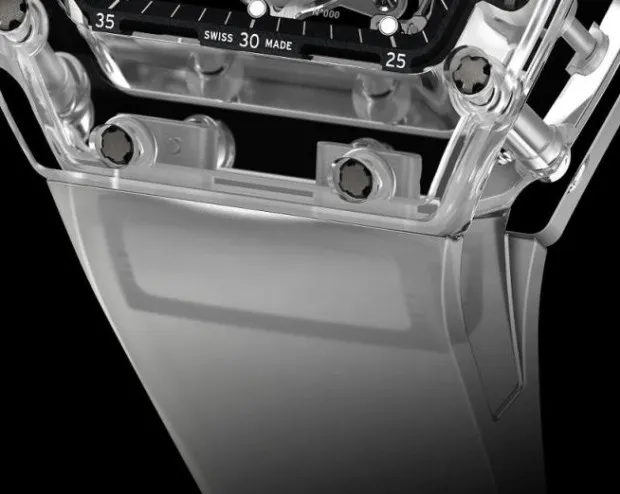 Each component of the sapphire case is assembled with grade 5 titanium spline screws, chosen for their strength and corrosion resistance, which ensures exceptional structural integrity while maintaining the visual purity of the transparent architecture. The result is a case that is not only visually breathtaking but also lightweight and comfortable on the wrist, providing a bold statement without compromising ergonomics.