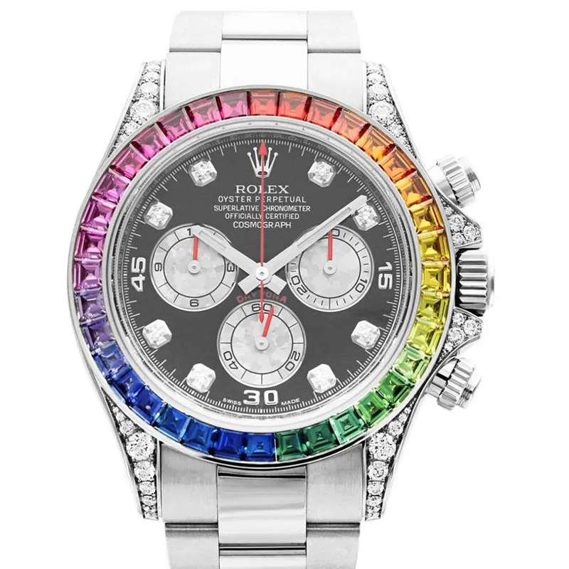 By offering cryptocurrency purchasing options, the Rolex Daytona Black Diamond Multi-Colored Gem Sapphire Rainbow White Gold 116599RBOW becomes more accessible than ever to global connoisseurs—combining the artistry of Swiss luxury watchmaking with the efficiency, sophistication, and security of modern digital payments. See the Rolex Cosmograph Daytona