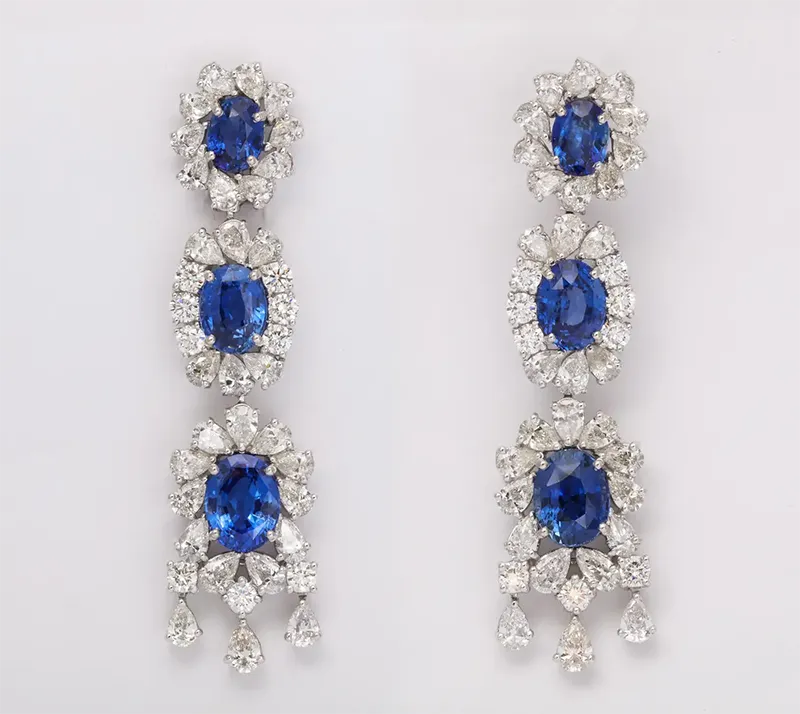 Earrings Design in the Sapphire and Diamond Earring and Necklace Set