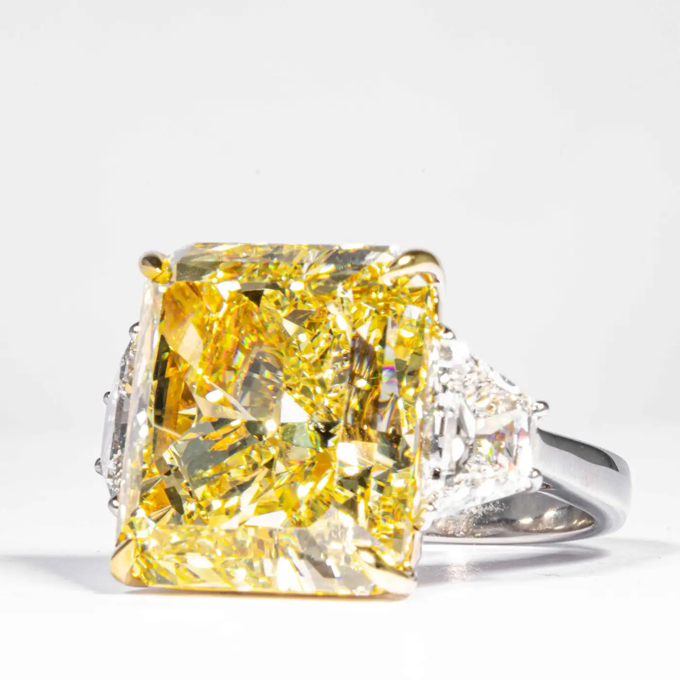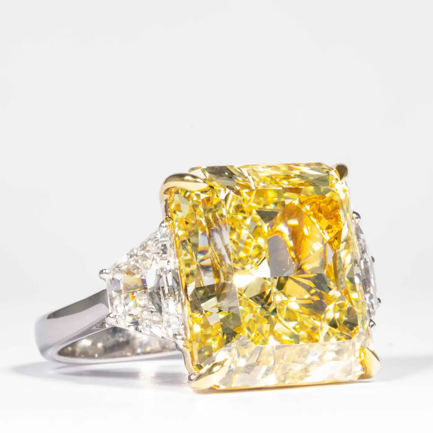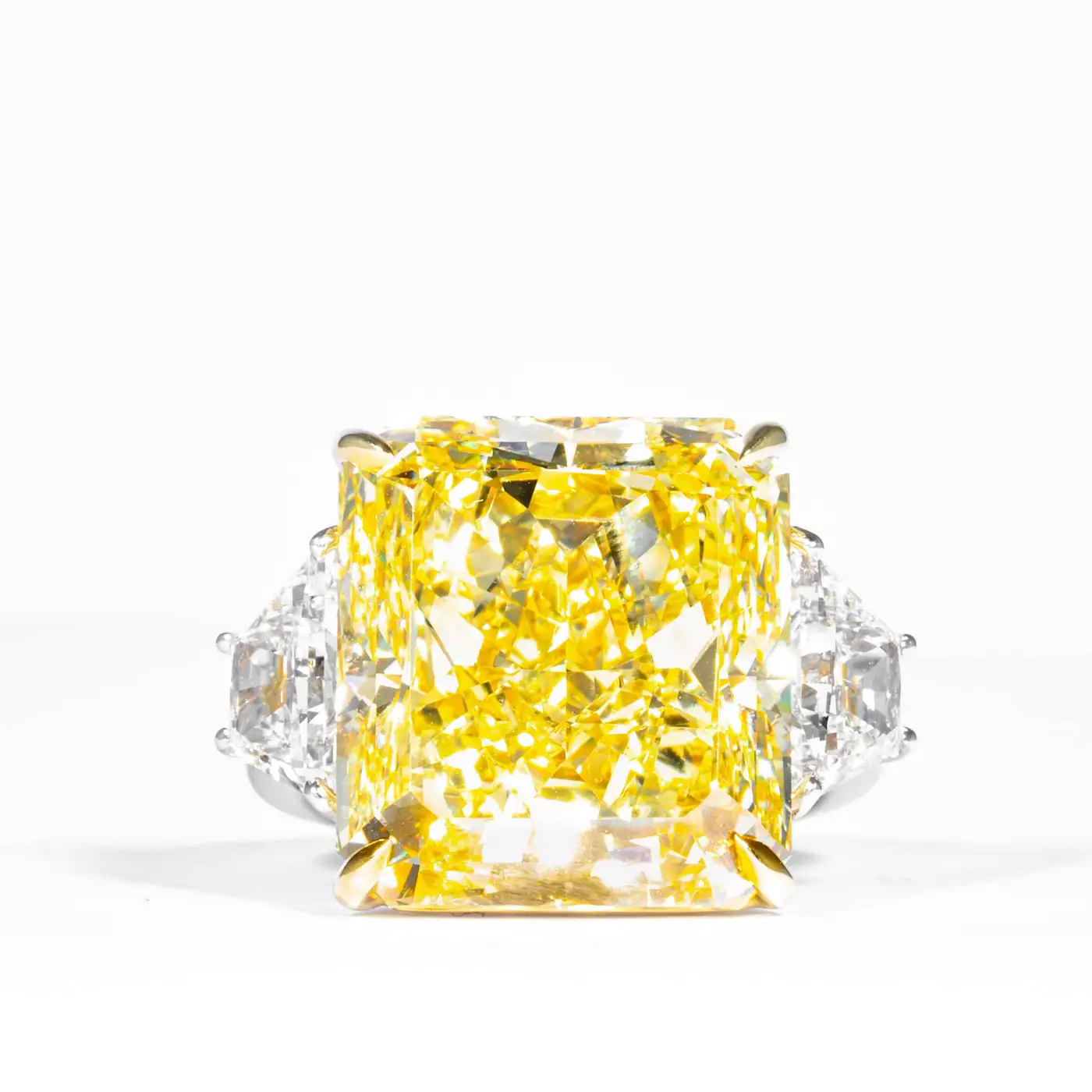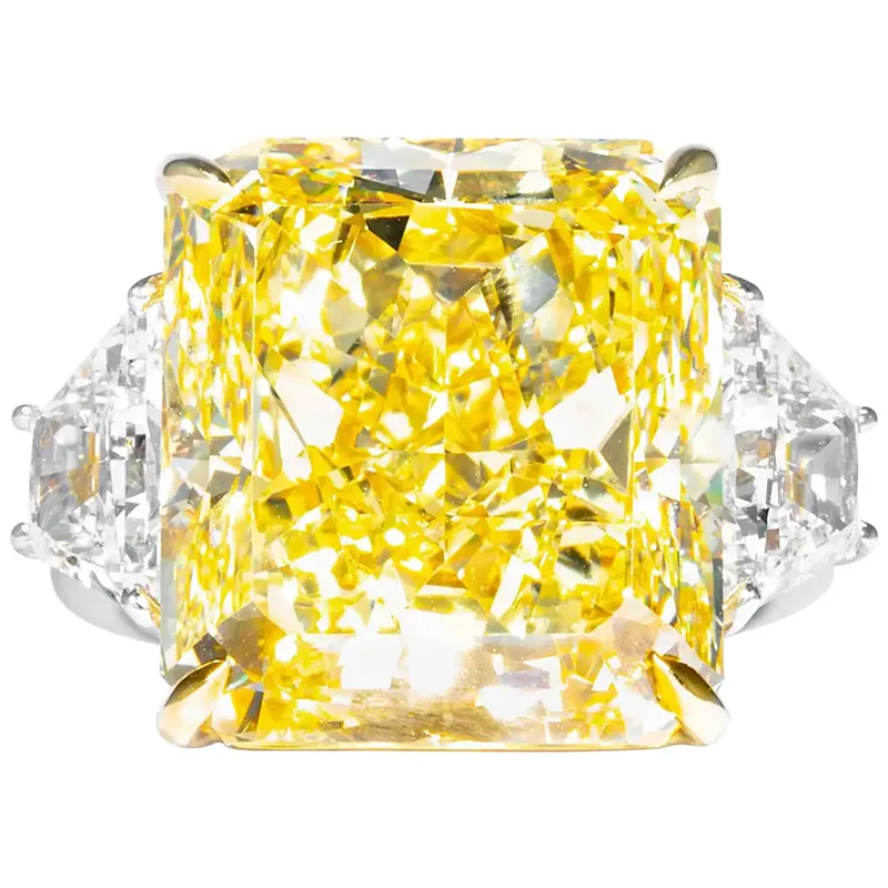 Center Diamond: 20.24 Carat Radiant Cut Yellow Diamond