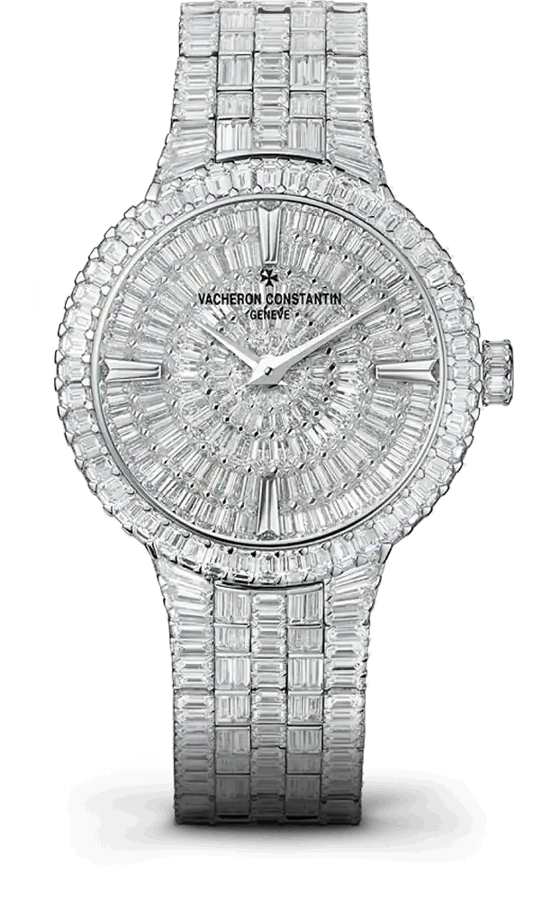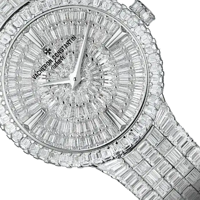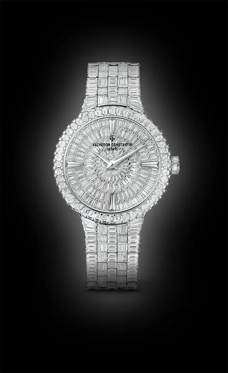 Crafted from 18K white gold, the 35mm case showcases Vacheron Constantin’s dedication to elegance in every detail. Its diamond-set bezel frames the masterpiece with unrivaled brilliance, elevating the aesthetic to a new level of luxury.