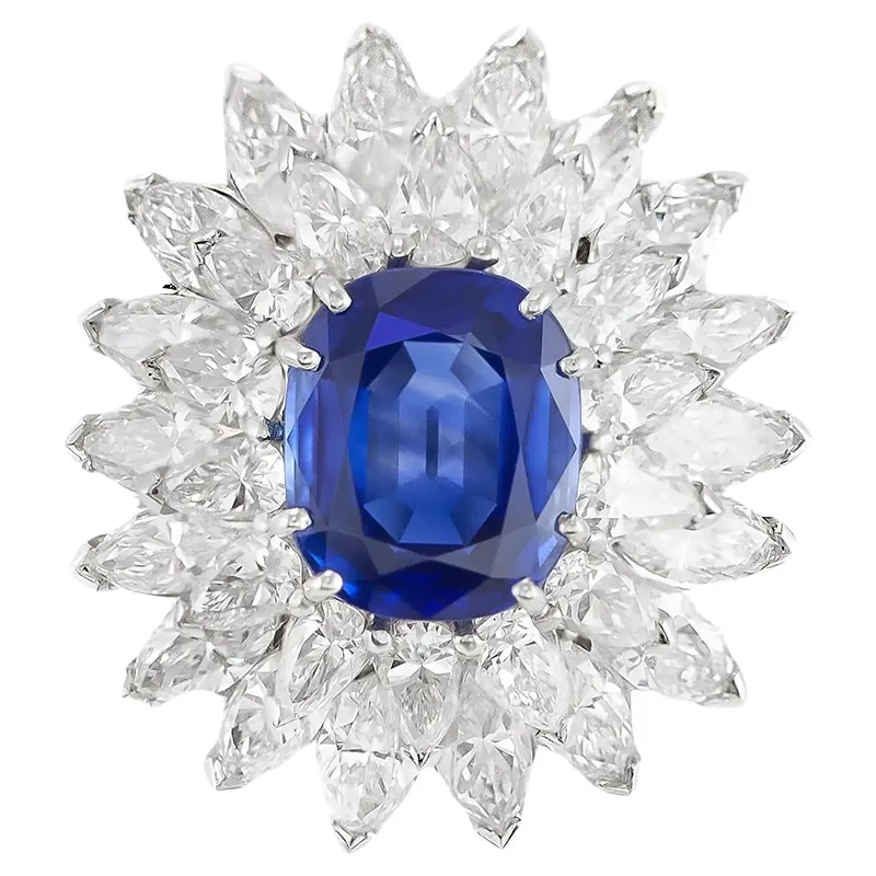 Historical Significance of the Vintage 1950s 6.63 Carat Kashmir Sapphire and 13.00 Carat Diamond Ring